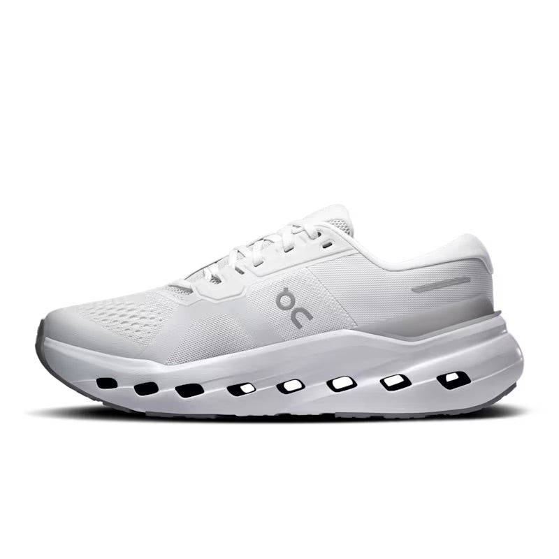 The On CloudRunner 3 combines proven CloudTec® cushioning with Helion™ foam to deliver responsive comfort mile after mile. A mild forefoot rocker and wide base create a stable platform, while the asymmetrical heel clip with enhanced medial support and higher sidewall cupping keeps your foot secure through every stride. The plush heel and tongue provide a cushioned fit, and the enhanced rubber outsole ensures reliable traction and lasting durability. Whether you're building your running foundation or maintaining consistent weekly mileage, this shoe instills confidence with balanced, supportive performance.