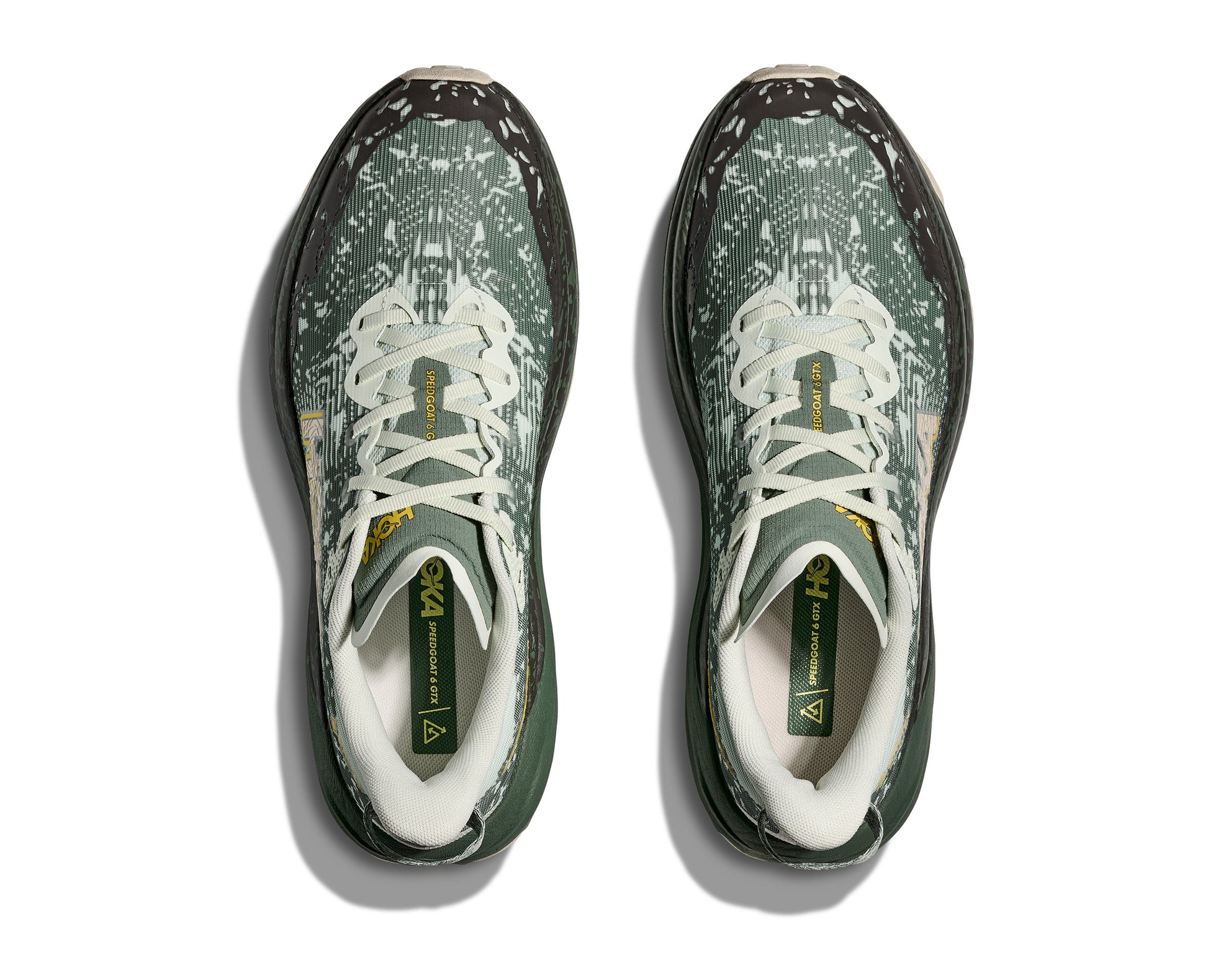 The Hoka Speedgoat 6 GTX delivers everything you love about the legendary Speedgoat 6 with the added protection of GORE-TEX waterproofing. The Invisible Fit membrane keeps feet dry without sacrificing the lightweight, flexible feel that makes this shoe responsive on technical terrain. Compression molded EVA cushioning absorbs impact while staying nimble, while Vibram MegaGrip outsoles with aggressive traction lugs bite into loose, wet, and unpredictable surfaces. A reinforced toe cap shields your feet from sharp rocks and roots. Built for runners who refuse to let weather slow them down.